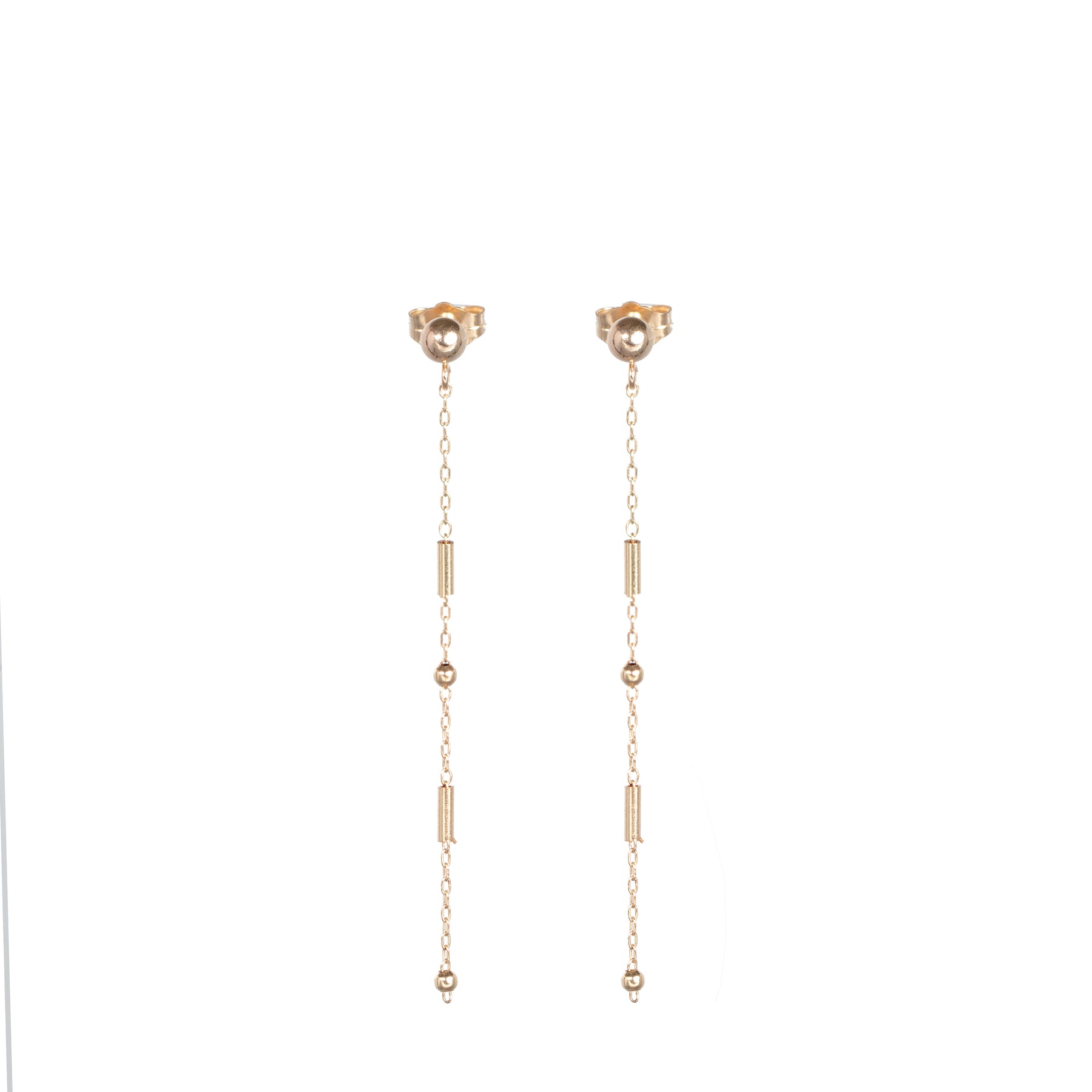 Preciosos Aretes en Oro Laminado 18k Canutillo, elaborados por expertos artesanos con laminado único de 18k y bálín de 2mm. Cada par viene con cadena cable resistente y pequeños canutillos para un look refinado. Un diseño ideal .