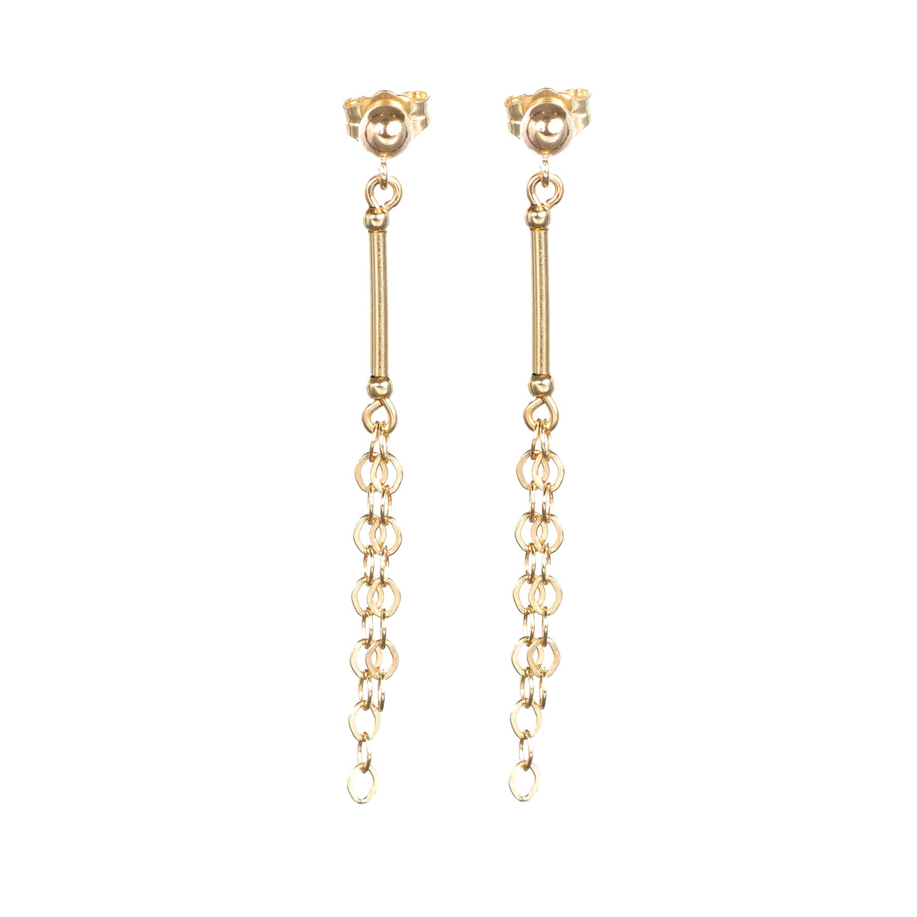Arete de oro laminado 18k con canutillo, bolas de 2 mm y cadena olímpica. Su sistema de sujeción a la oreja es por medio de un topo balin 4mm para que puedas usar tu arete con estilo y comodidad, a la vez que mantienes la seguridad de que se mantendrá en su sitio. Dicho estilo es elaborado por artesanos expertos.