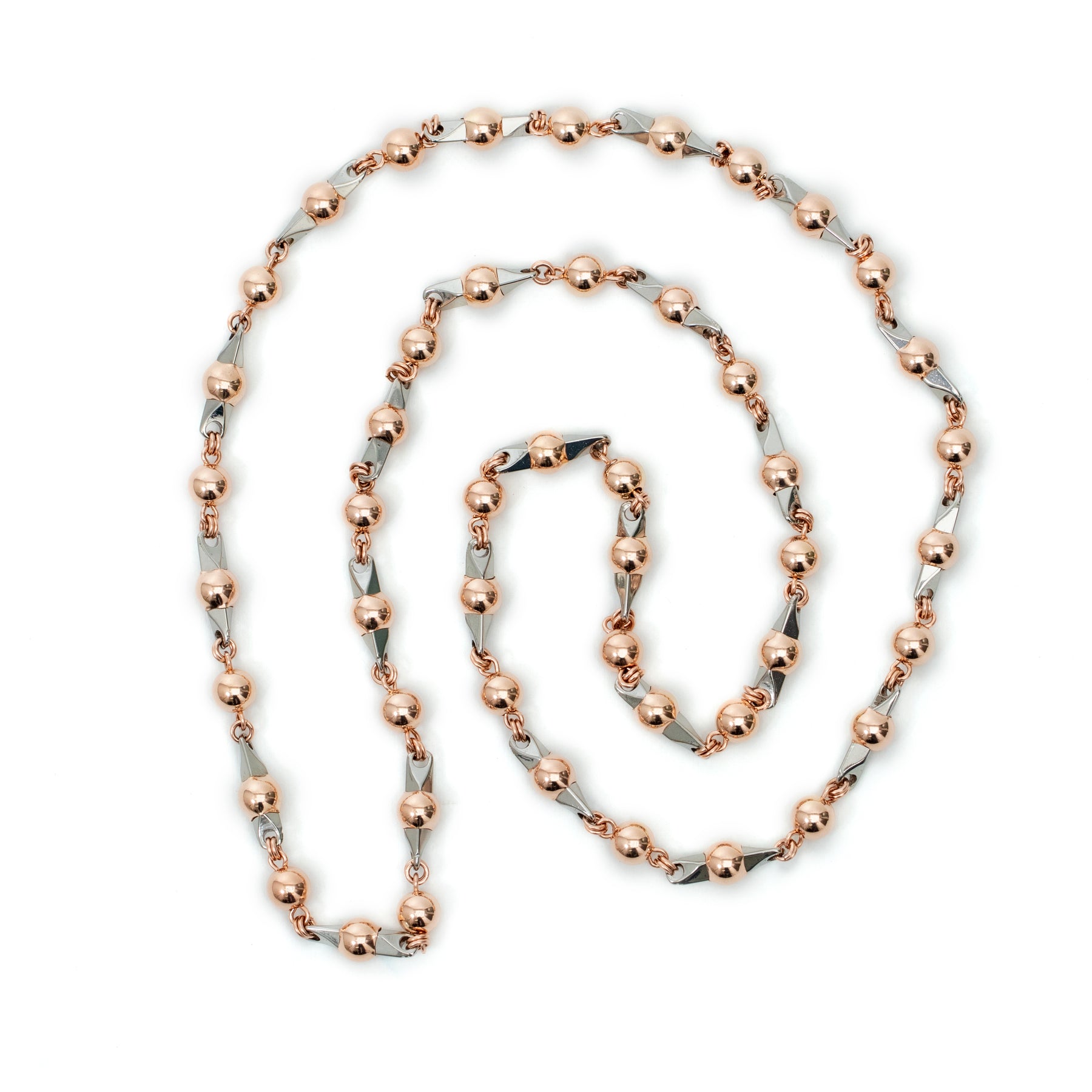Collar artesanal en oro laminado 18K con bolas laminadas rosadas 6mm. Acompañadas por pines de acero 316L. Todo el proceso es elaborado por manos expertas en tecnica de alambrismo y ensamble.