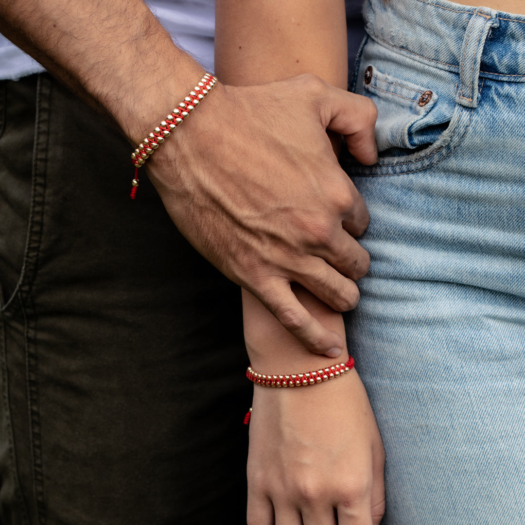Esta bella pulsera está tejida para El o para Ella, en un diseño zigzag con bolas de 5 mm en oro laminado de 18k. Un accesorio elegante que le añadirá un toque de sofisticación a cualquier conjunto, para que se sienta siempre elegante y en tendencia.