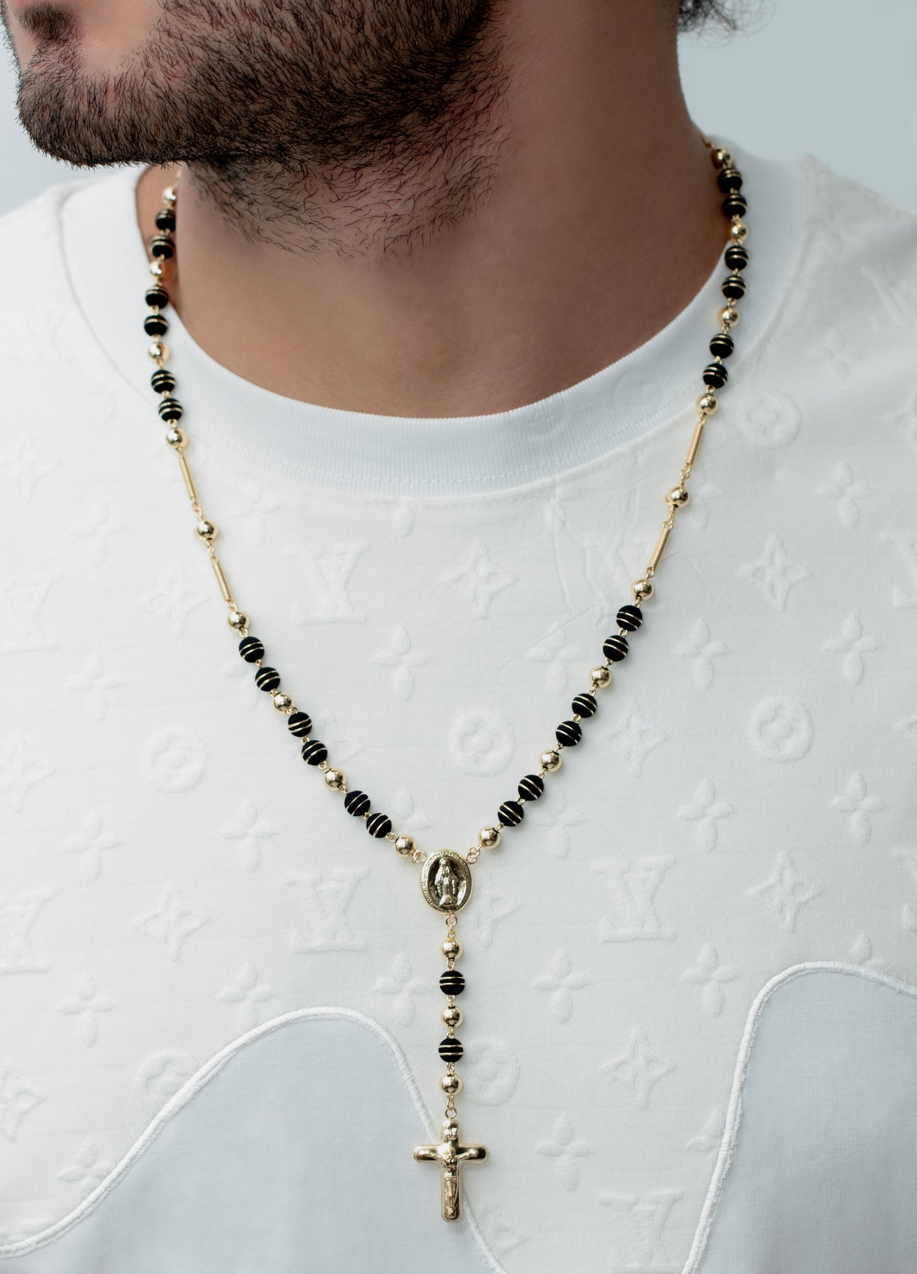 Rosario de hombre en oro laminado 18k dorado 6mm con neopreno argollado con alambre de oro laminado dorado, elaborada con técnica realizada por artesanos expertos en el arte.